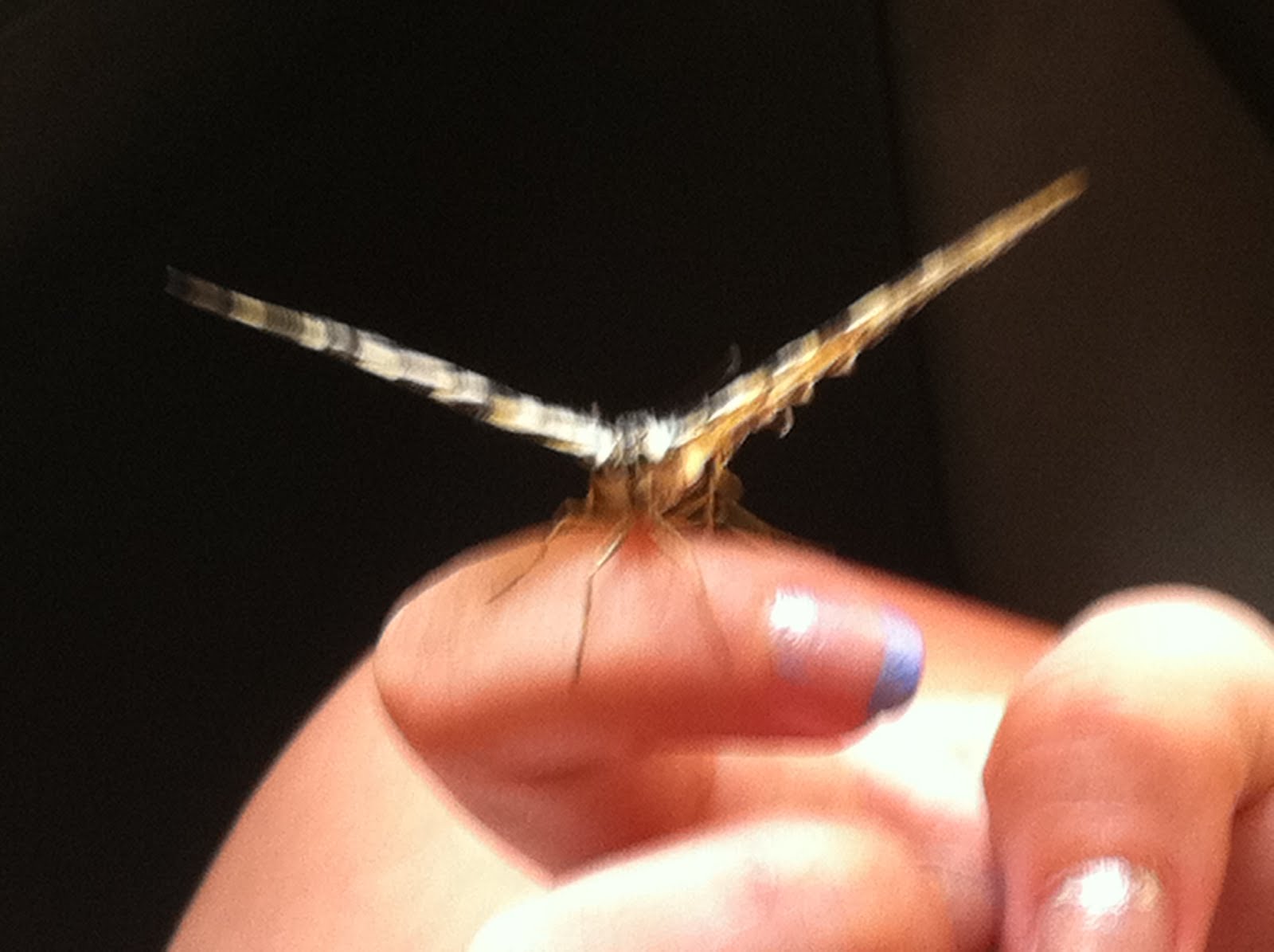 Como teníamos que coger el coche para marcharnos, la sostuvo en su mano durante todo el trayecto, le hablaba con cariño animándola a vivir y acercándola al cristal para que le diera el sol y terminara de secarse. Cuando llegamos al destino, salimos del coche y de pronto, la mariposa a la que le había puesto de nombre «pintitas», extendió sus alas y se elevo hacia el cielo.